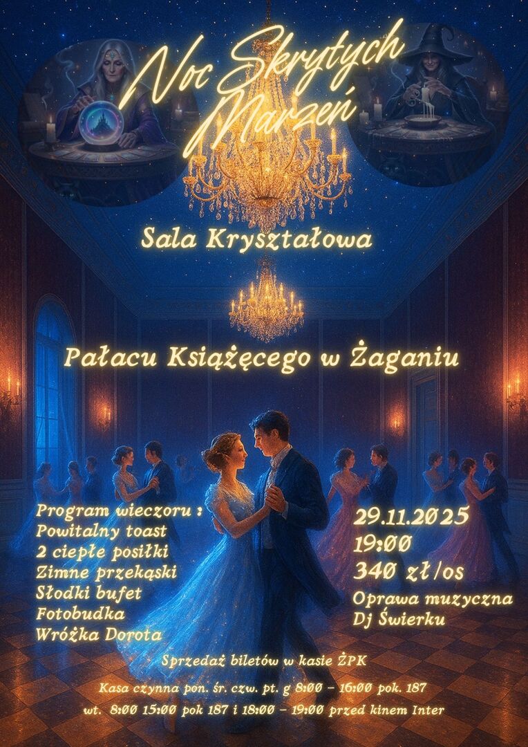 ​Mamy zaszczyt zaprosić na wyjątkowy, Andrzejkowy Bal – „Noc Skrytych Marzeń”, który odbędzie się w magicznej i historycznej scenerii Pałacu Książęcego w Żaganiu.